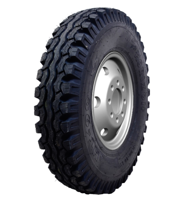 - Farm or Agriculture tyres : Horizon offers tyres for tractors designed for high resistance to cut and tears for longer life. Its mud shakers help the tyre to shake off muds easily. The patter of agricultural tyer is HT-G 444 the sixes raging from 12 inch to 38 inch